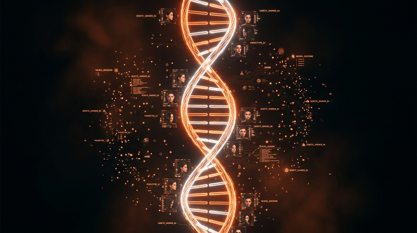 Just as biological DNA encodes specific instructions for eye color, bone structure, and skin pigmentation, Visual DNA encodes specific instructions for every visual attribute that defines a character. And just as biological DNA is read whenever new cells are created, Visual DNA is read whenever new scenes are generated.
